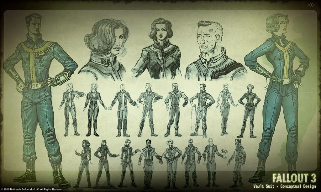 I decided to pick the silhouette on the last page, third one along of the bottom row. I quite liked the wasteland, ranger like appearance and figured I could make some kind of wanderer of a post-apocalyptic world who goes around helping people. My immediate thoughts of something similar was the Fallout series, so I very loosely took inspiration from it, being careful not to look too similar to the game's style while still making the appearance fit the theme.